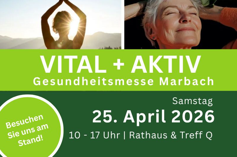 Besuchen sie uns auf der Gesundheitsmesse Vital + Aktiv am 25.04.2026 im Marbacher Rathaus und im Treff Q! Das erwartete Sie: